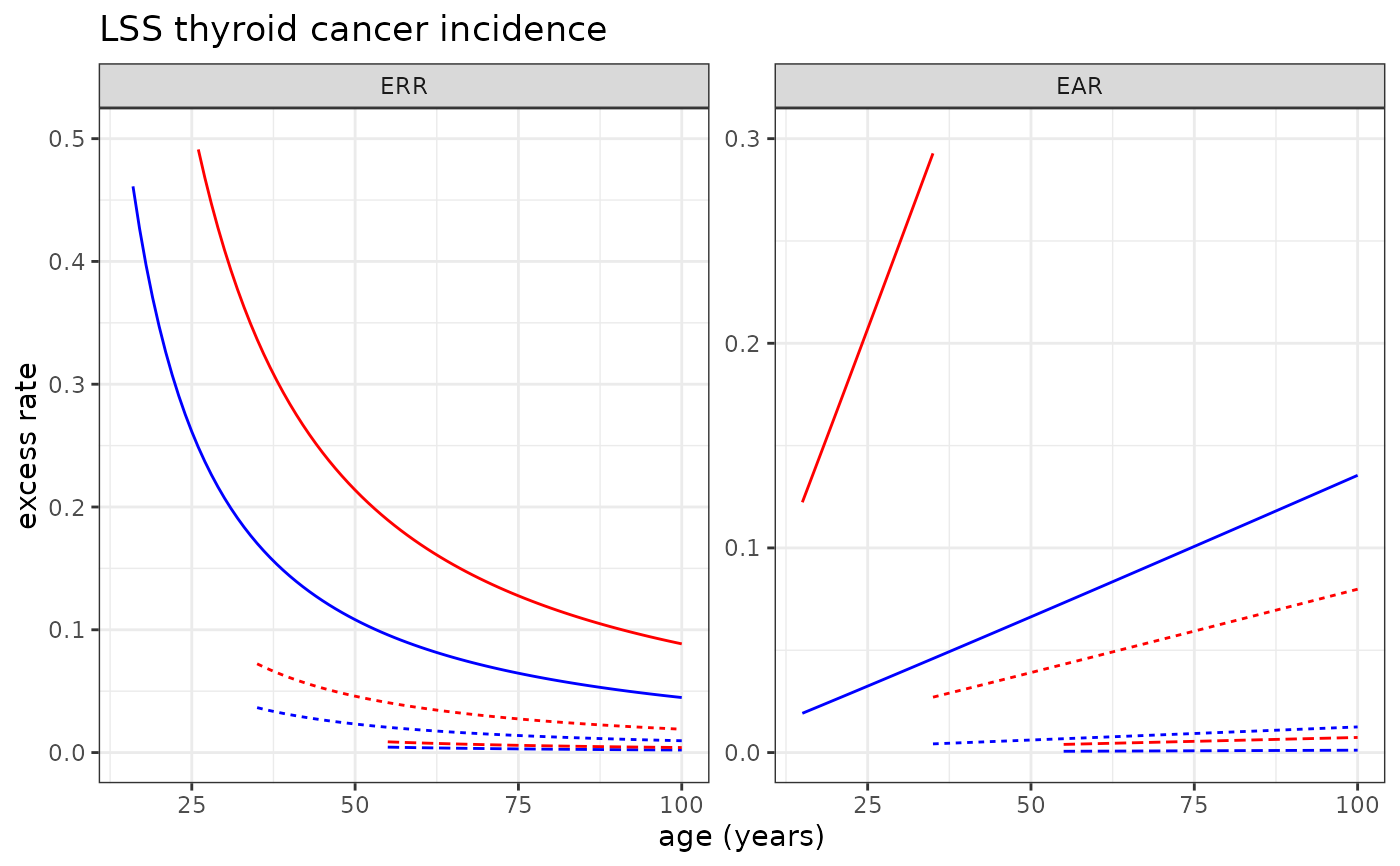 # Plotting LSS thyroid cancer incidence risk model
